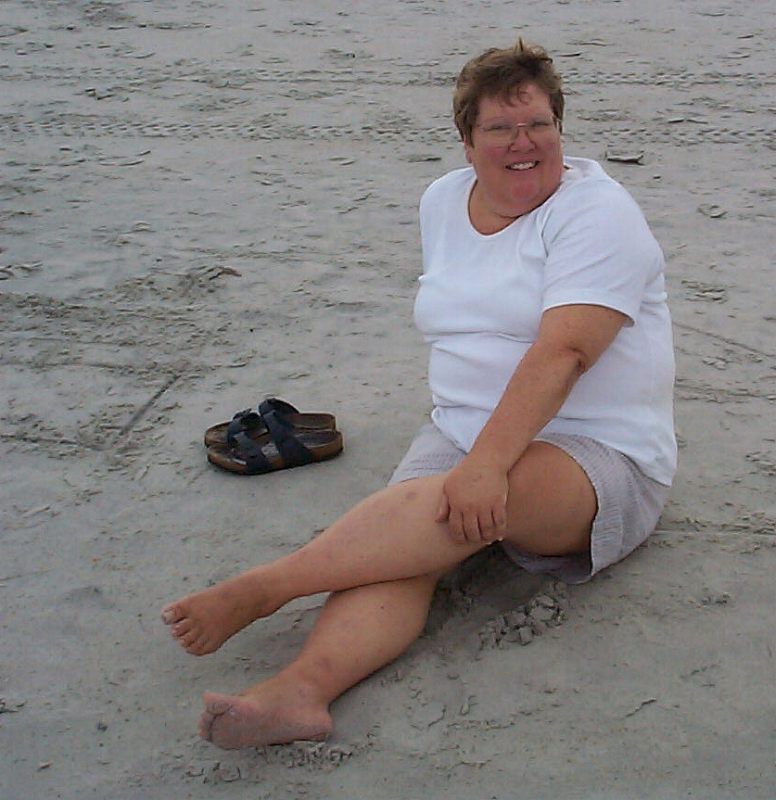 Deb relaxing on Wilmington Beach, NC (8/19/00) |