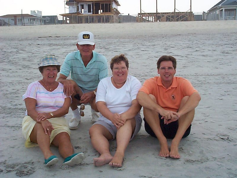 Here we are sitting on Wilmington Beach, NC (8/19/00) |