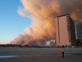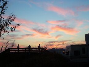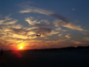 Bob taking sunset photos while Chris is preparing dinner. (Actually, there was a tragic forest fire that started during our visit. Some of the photos above include the Forestry Fire Fighting plane.) |